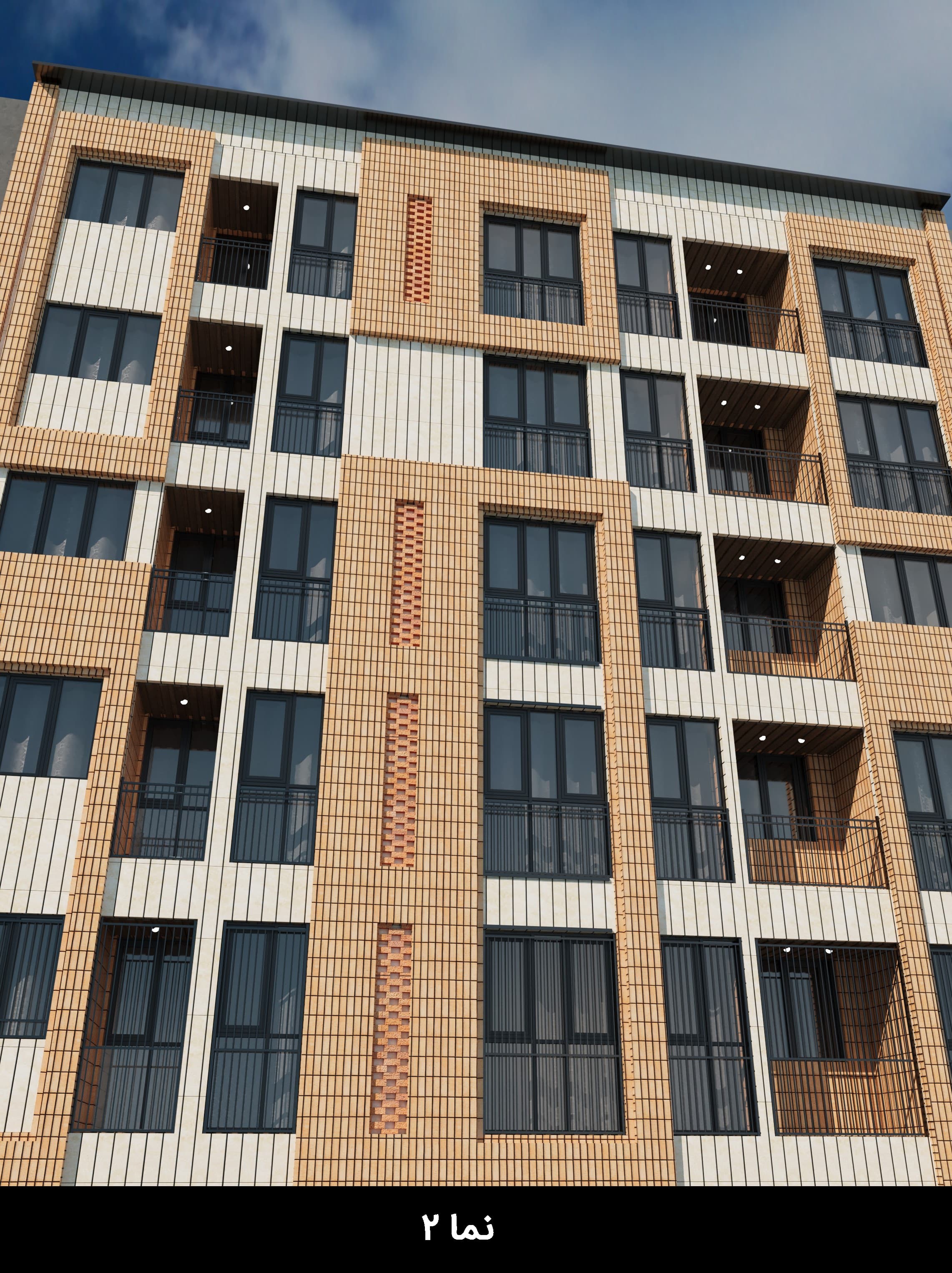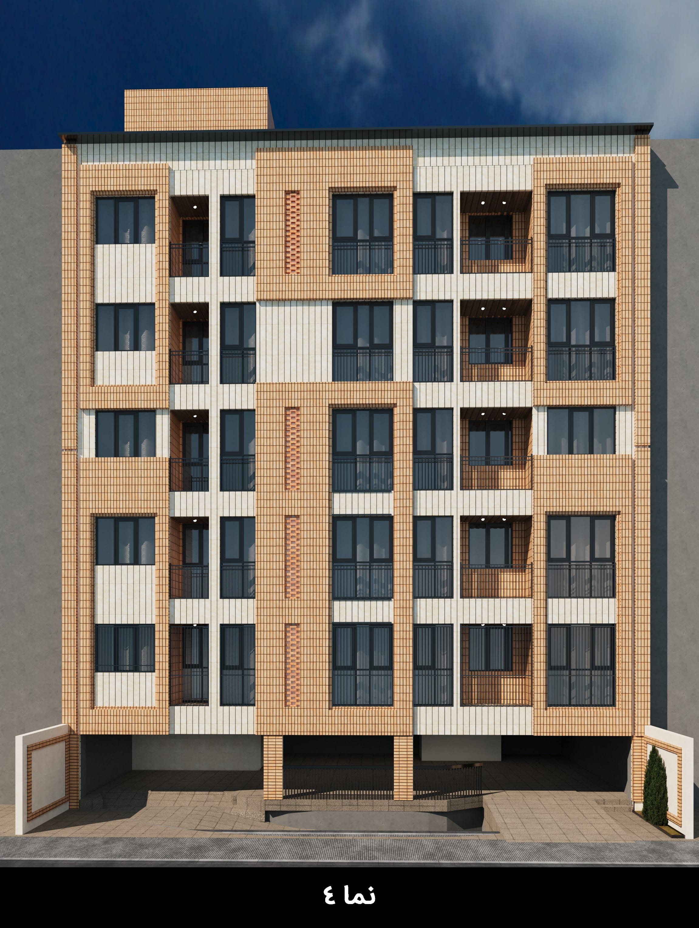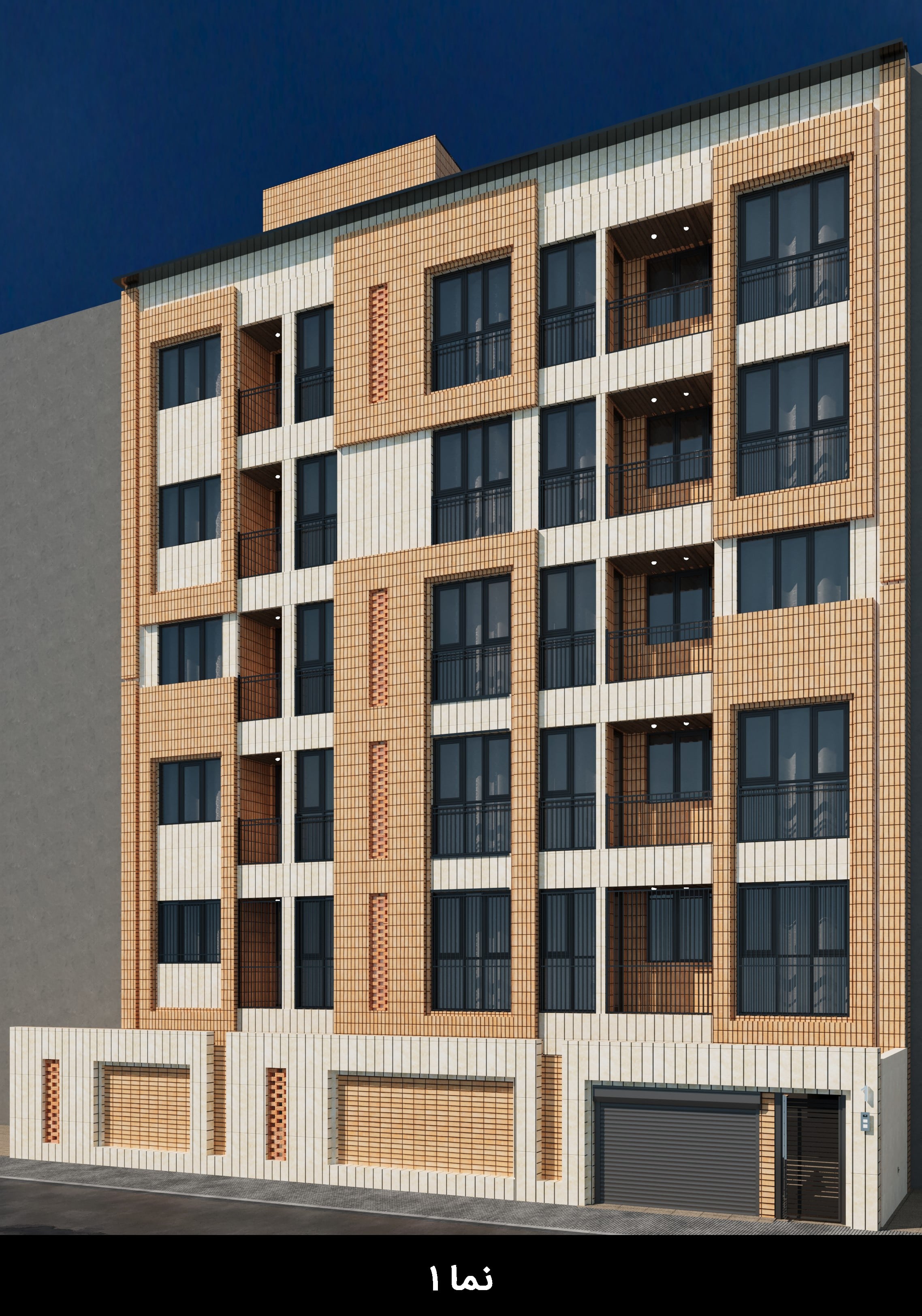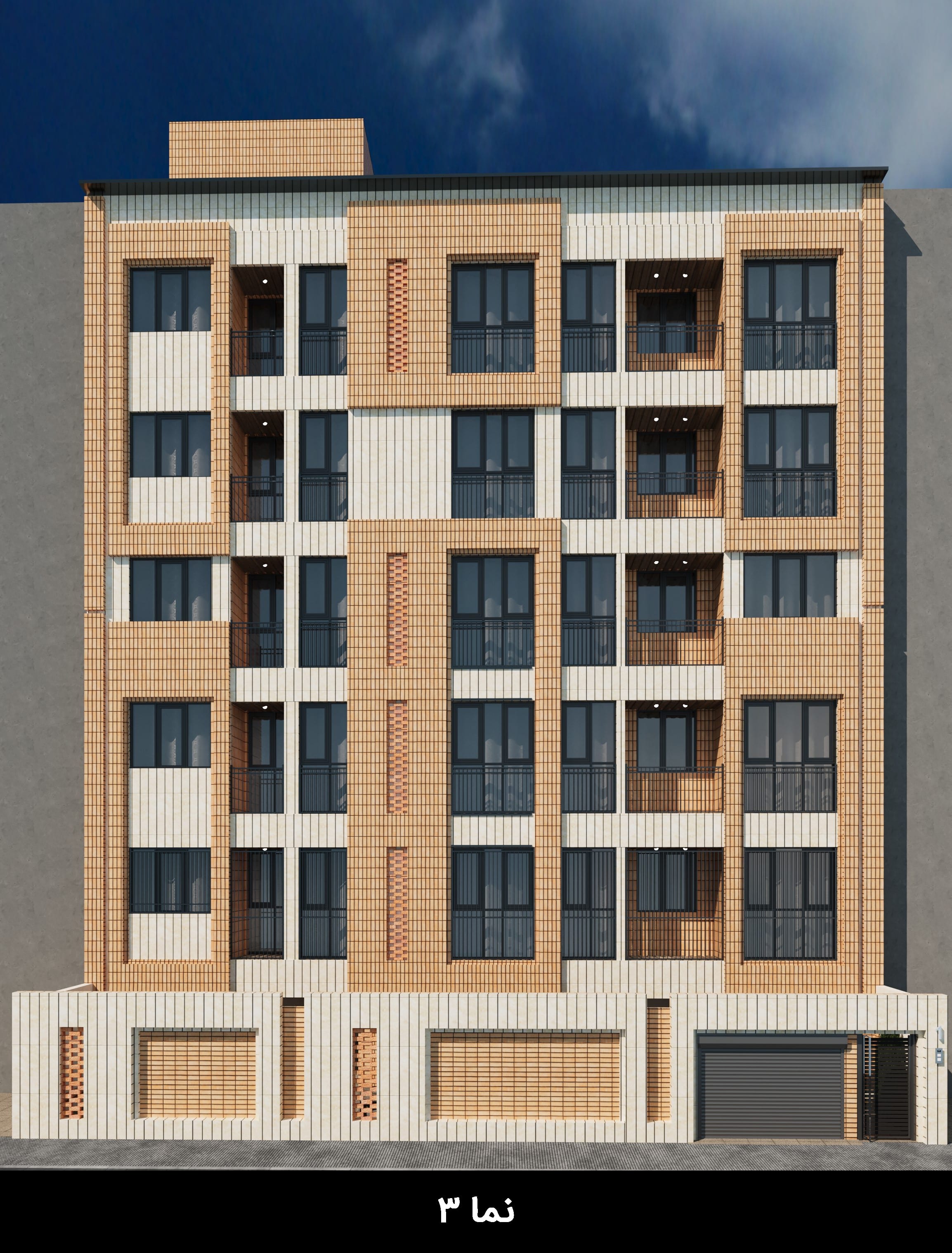 نوع پروژه: طراحی نما مکان پروژه: تهران، منطقه 8 نوع کاربری: مسکونی متراژ پروژه: 1500 متر مربع تعداد طبقات: 6 طبقه روی پیلوت
